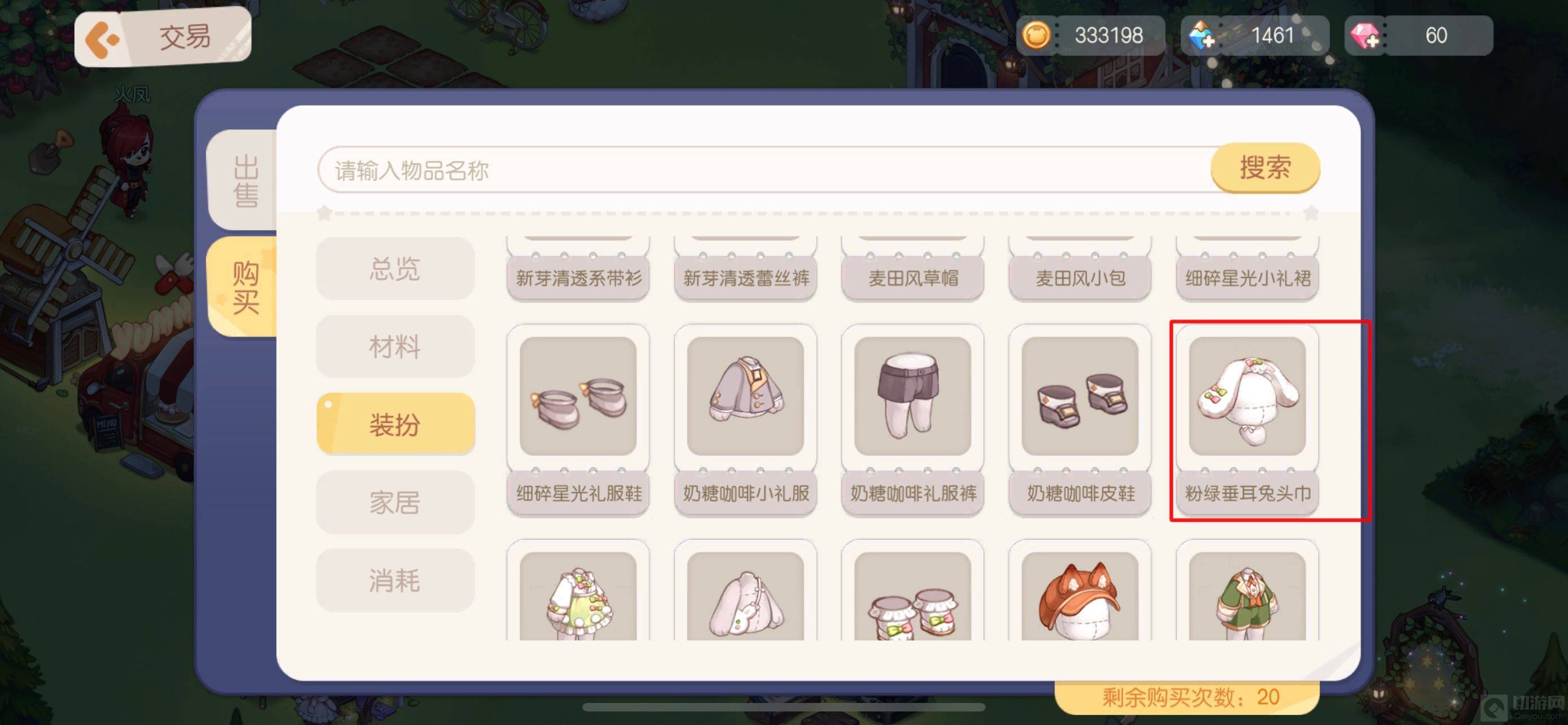 2、粉绿垂耳兔头巾可以在交易所中购买。