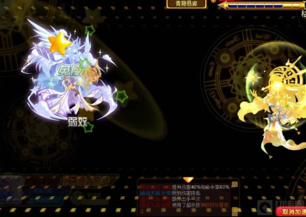 4、第四战,记得上阵对应神火属性的精灵,优先解决中路,圣焰霍尔必杀秒掉真元玄武,其他都OK了。