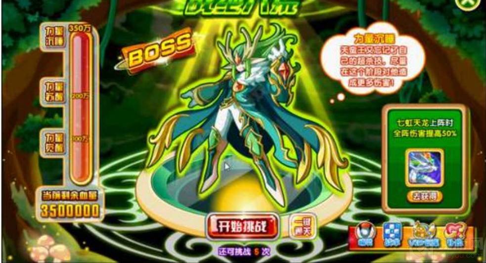 二、第二阶段一共4小关,上阵指定属性精灵,战天蛮王不召出召唤兽,前2关是上阵神草,后2关是上阵神火。