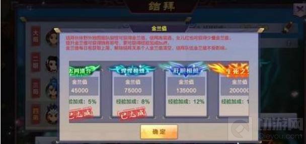 2、结拜加成:与游戏中的玩家结拜,金兰值满20万,最大能够获取16%经验加成。