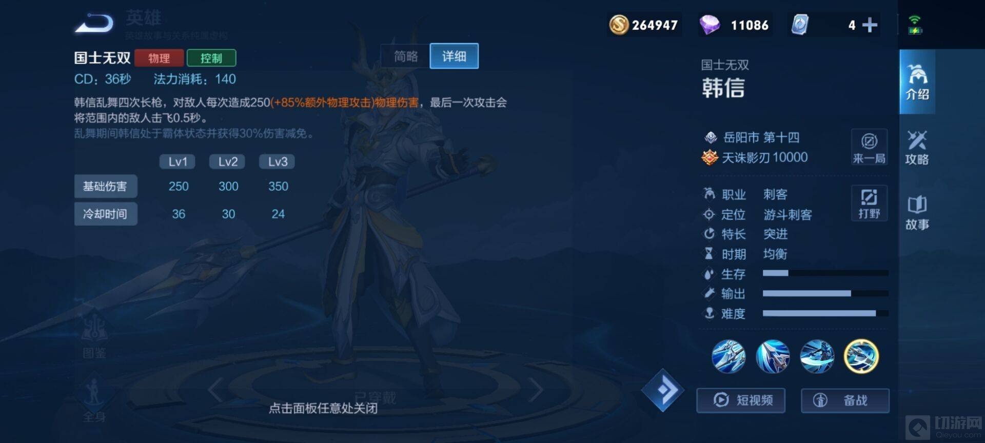王者荣耀游戏中的韩信怎么玩