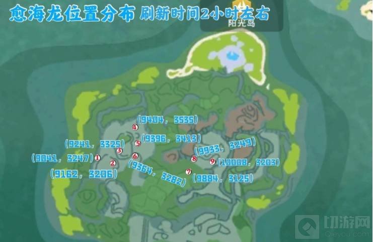 2、然后是愈海龙,沉眠之海的精英级怪物,55级可抓捕,有着固定刷新点,一个群岛有着9个刷新点。