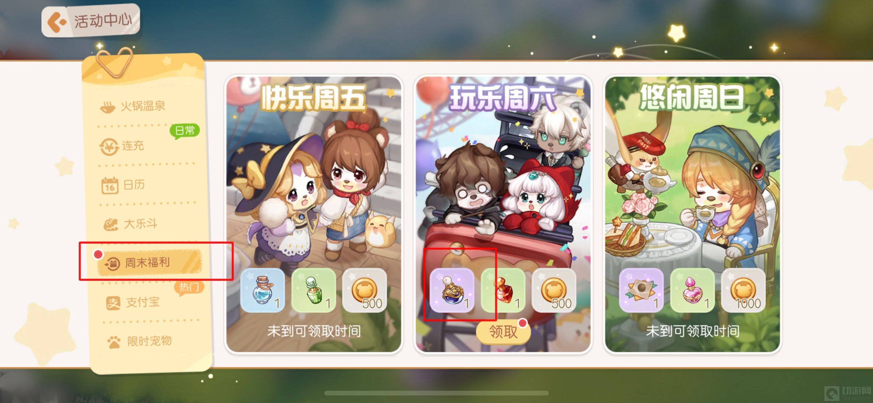 4、活力月露膏是在活动中心的周末福利的玩乐周六中可以领取。