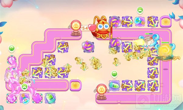 5、然后就是按照我们这种进度,可以多放置几个船锚,优先升级靠近萝卜的道具,最后的画面就是船锚满天飞了,如图所示。