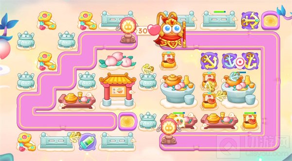 1、首先我们在右上角放置一个船锚,然后在下面的两个门这里放置一个毒针,然后这里最好是开一倍速进行攻打;