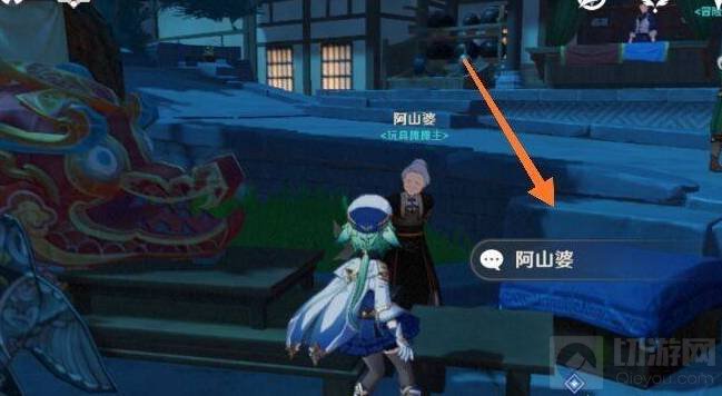 2、然后在璃月港的另外一头找,发现一个卖风筝的婆婆,就是画的主人了;
