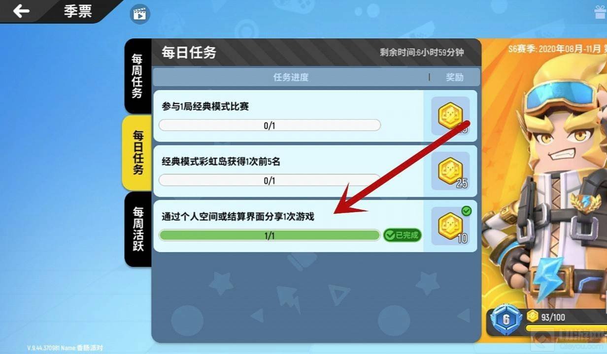 4、分享完毕后,再点开赛季的每日任务,可以看到分享任务已经完成了。