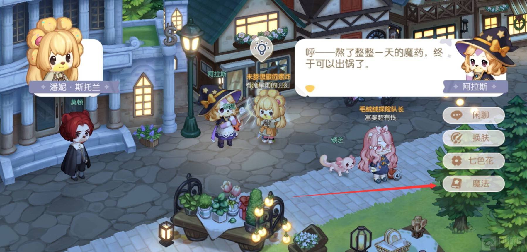 接着就会自动寻路到淘宝街找到阿拉斯,点击魔法。