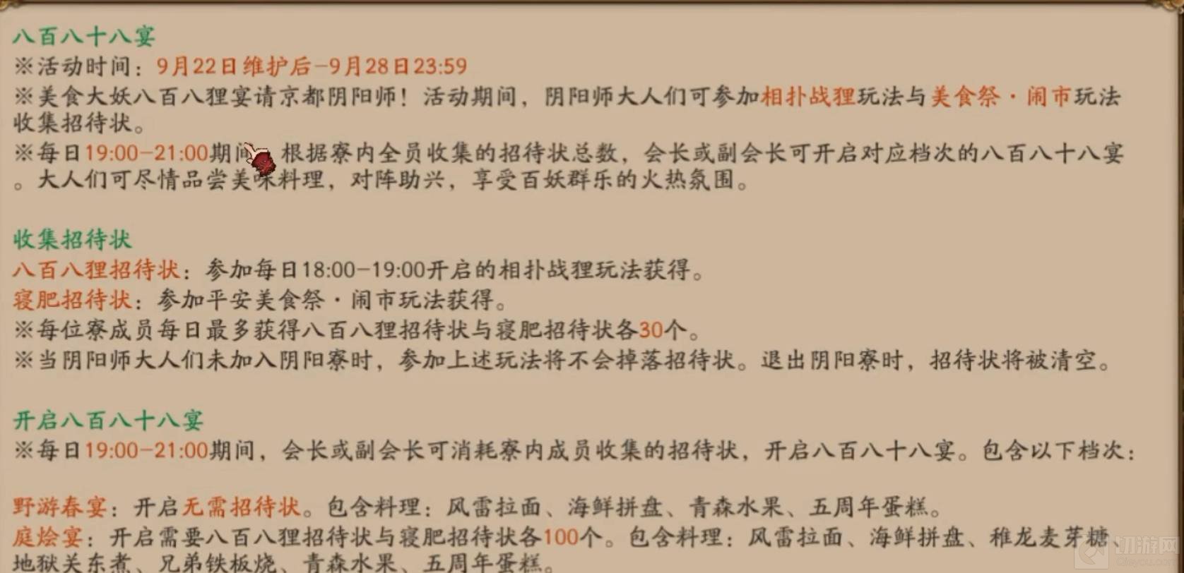 1.参加闹市活动可获得寝肥招待状,获得招待状开启八百八十八宴。