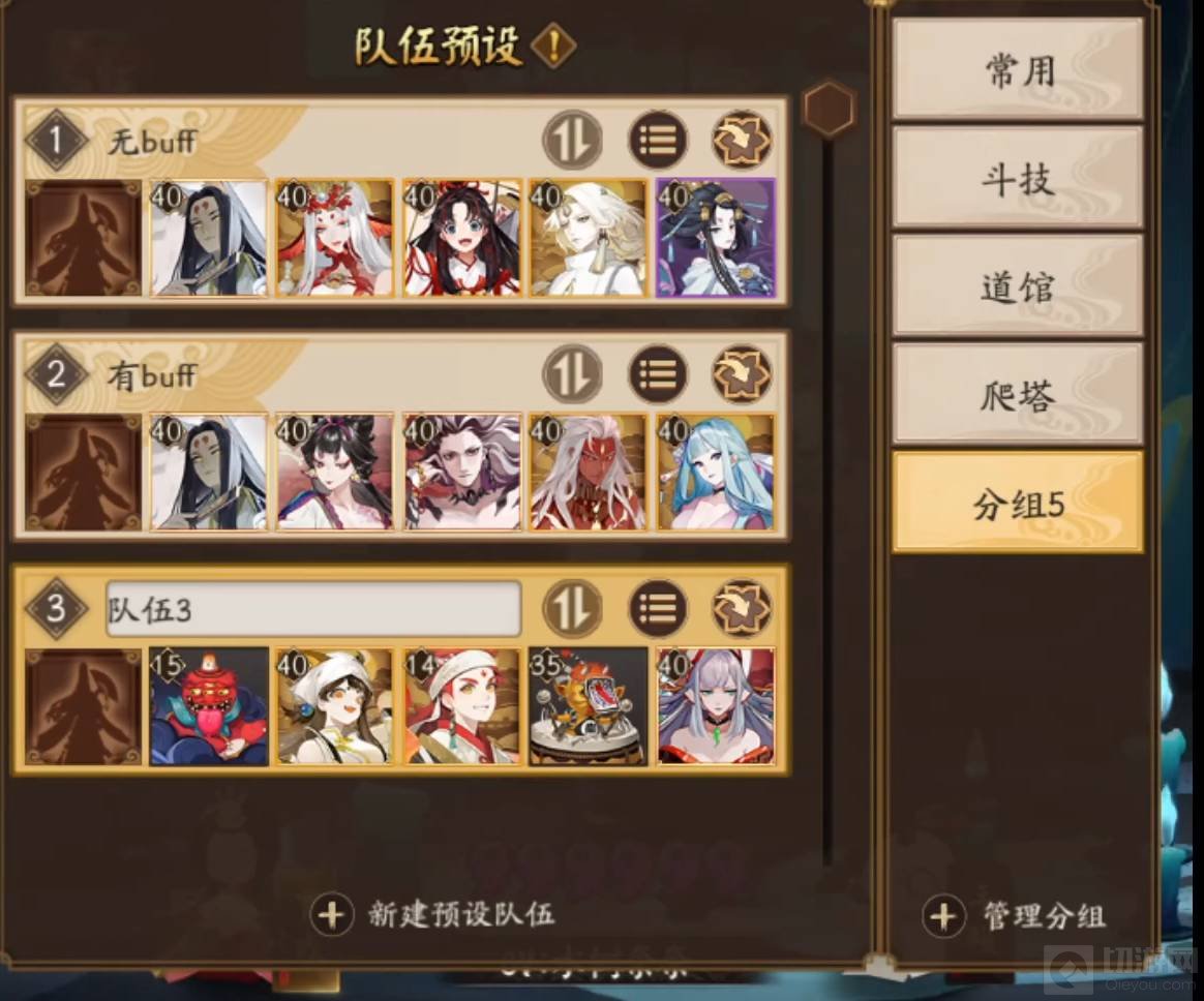 4.队伍预设如下所示。