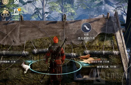 2、为了羽毛确认信息,需要帮杰儿尼找到被利凯·贝尔借走的日志,我们可以在利凯·贝尔身后的屋顶上找到被风吹走的日志完成一次讨伐:赫尔赛·玛丽后,杰儿尼会按照约定提供羽毛给冒险家。