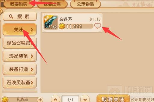 1、首先需要关注要买的装备,然后回到“关注—我要购买”列表中。