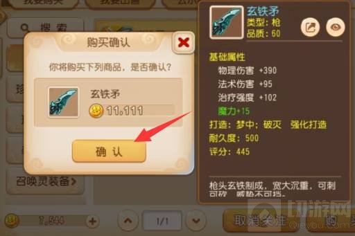 4、最后弹出的最后确认栏中,快速点击确认按钮,就可以抢购到这件装备(尽量做到1秒钟内一气呵成点完这三个点,就可以比其它人更快抢到)。
