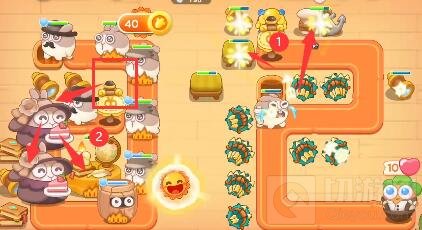4、右侧图开完之后炮塔全部卖掉,全部放到左侧中心处打输出。