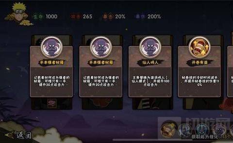 2.后面解锁的独臂学员鸣人、写轮眼佐助和学员小樱分别可以通过两个半本强者秘籍进化成自来也、大蛇丸和纲手,这也恰好对应了木叶三忍的设定。少卡可以在宝箱开出暗卡、新春卡卡西和万元卡卡西,通过两个半本秘籍可以进化成神威卡卡西。