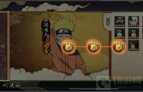 7.另外还有一个就是在忍者选择界面依次点击鸣人、佐助、卡卡西、小樱、鸣人,点击出战会出现三个拳头,把这三个拳头都点一下会直接激活鲛肌融合的鬼鲛,但是,用这个忍者通关的话只会完成日常,不能完成进度任务等。