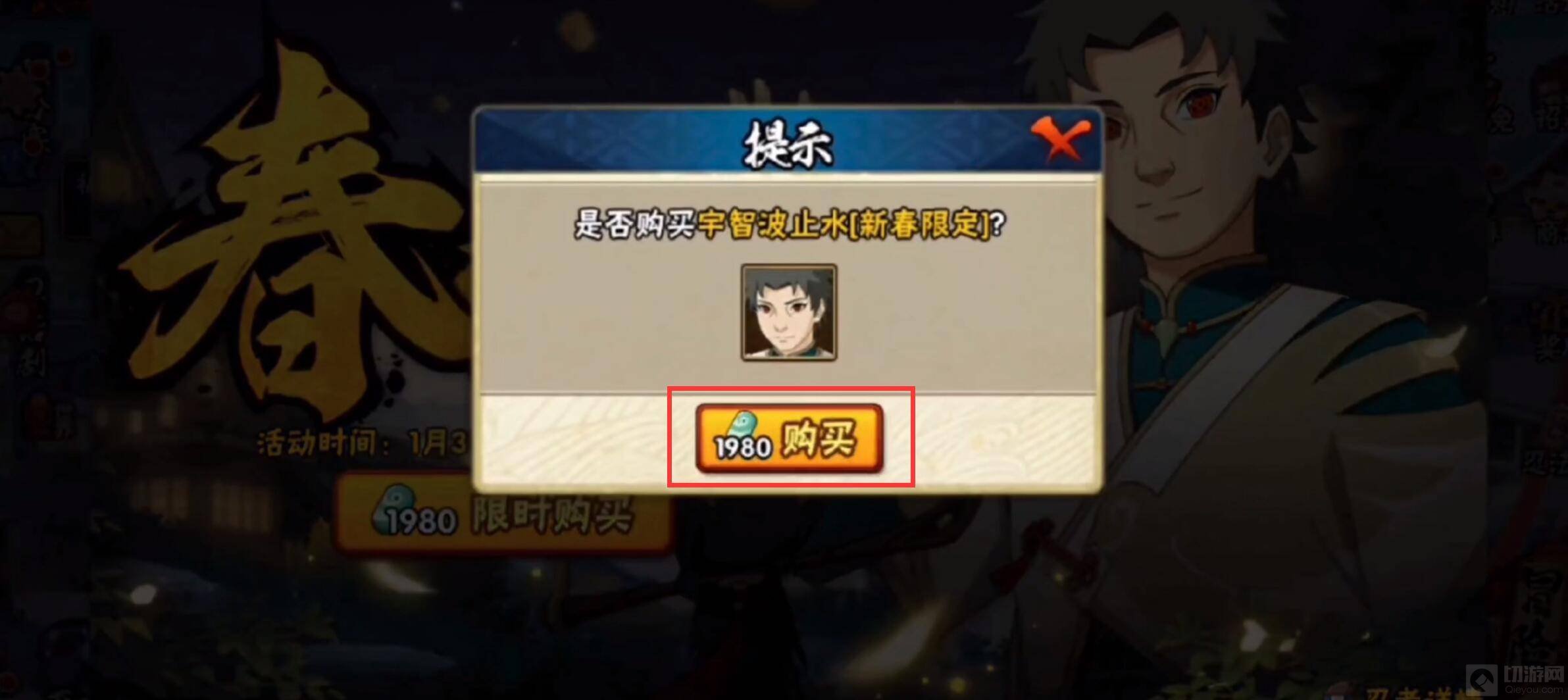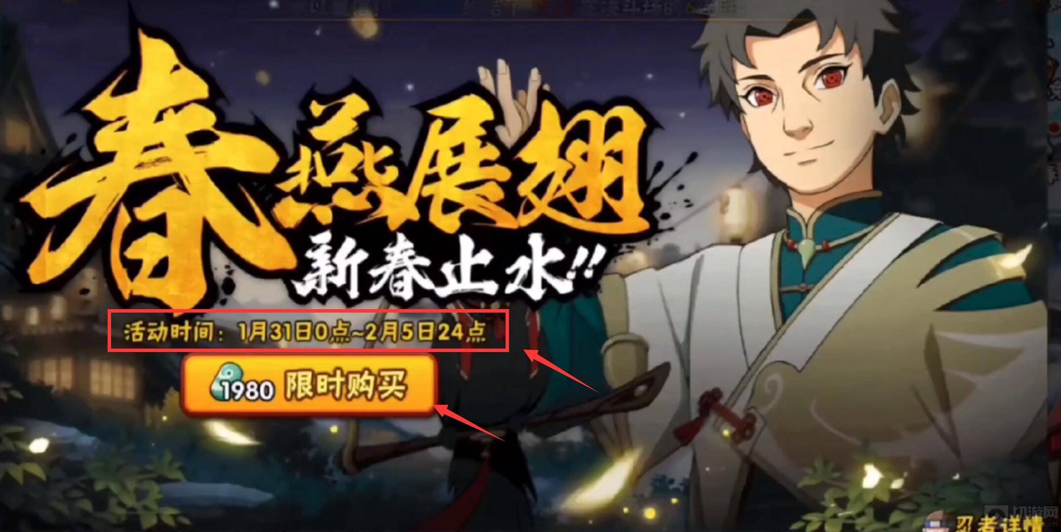1、新春止水是新年刚出的限定A级忍者,在1月31日时新春止水正式上架在游戏中,活动时间截止2月5日,售价是1980点券,只能通过点券的方式直购。