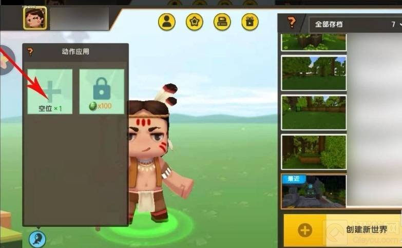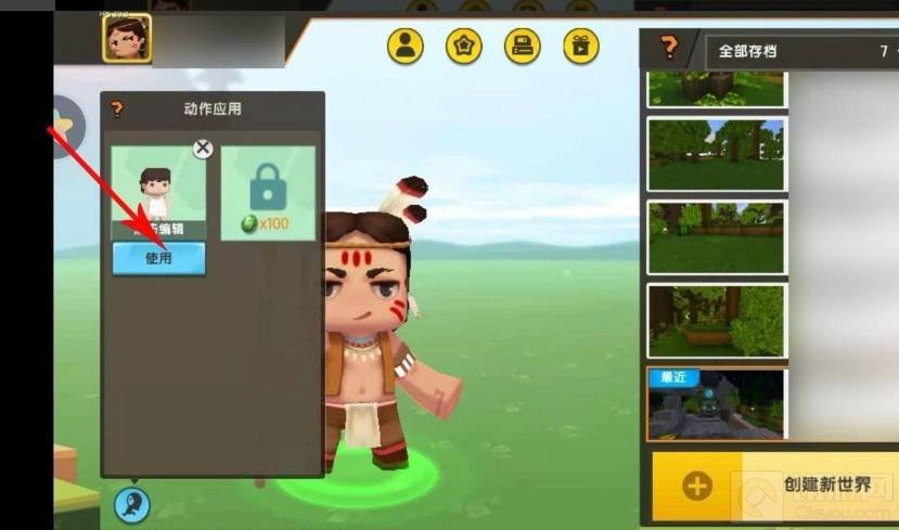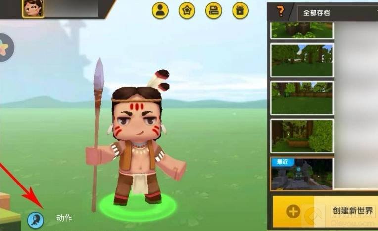 1、首先打开迷你世界游戏,点击左下角进入动作界面。