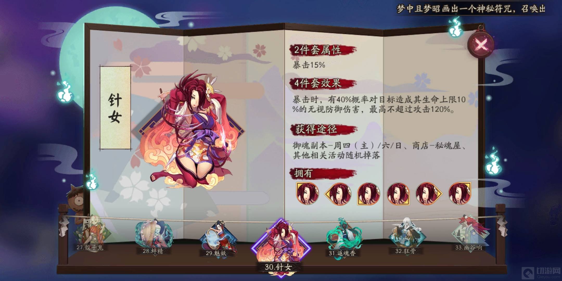 2,酒吞,也是不需要鬼火的普攻型式神,带针女(攻攻暴)御魂。