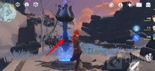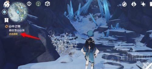 7、接着根据任务指引去到雪山山顶,开启第一层的屏障。