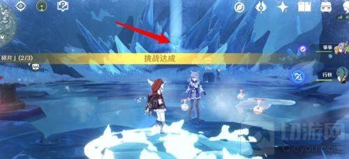 6、完成挑战后打碎后面的冰树,点击开启就可以获得第三个碎片。