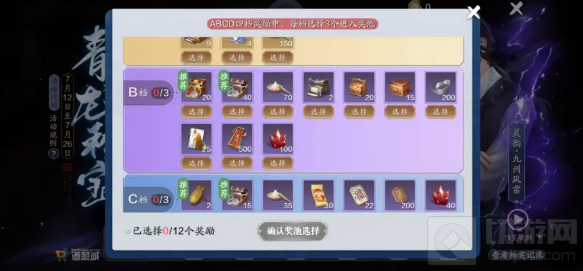 天四和玄河·焕生自选礼不用多说,在C档必选,最后一个位置留给天衣礼券或幻彩之纱,这里看个人选择。其他的道具都可以白嫖获取,可以不需要在此进行选择。