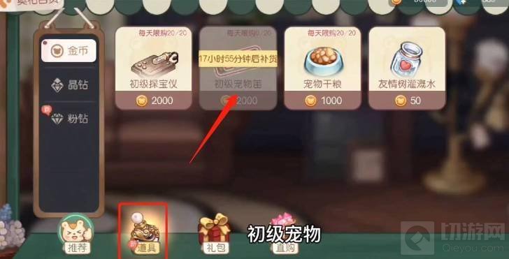 2、在百货界面中点击道具,然后购买宠物笛。