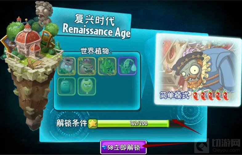 1、先进入游戏,找到复兴时代的地图,可以凭借星星进行解锁,也可以用钻石直接购买。