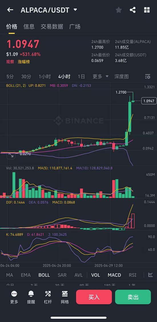 当币安宣布将于下架ALPACA时,市场曾断言这个市值不足千万美元的边缘代币将走向消亡。然而,剧情在倒计时48小时内陡然反转——ALPACA价格从4月29日最低点0.066美元一路狂飙至1.2美元,单日涨幅超15倍。这场“末日轮”般的疯狂,不仅颠覆了传统金融的利空逻辑,更暴露出加密市场流动性迁徙与人性博弈的深层规则。