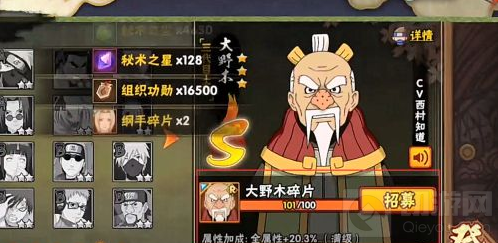 可以通过参加巅峰对决来获得大野木碎片,然后系统会根据你的排名,奖励大野木碎片给你。奖励的大野木碎片可以在邮件中领取,当你凑集了100个大野木碎片后,就能到大野木页面处点击招募大野木了。