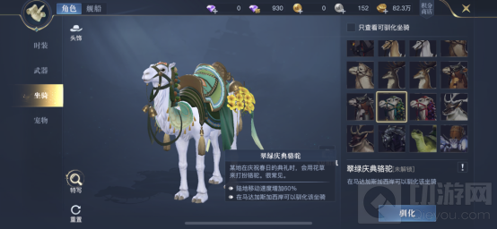 3、坐骑可选的种类还是非常丰富的,各式各样的马匹、骆驼、白鹿和海洋生物等等。这些坐骑不仅是外观好看,还会给角色增加一定的属性,比如翠绿庆典骆驼,获取后可以增加陆地60%的移动速度,大幅度节约玩家陆地做任务的时间。那么就有小伙伴想问,这些坐骑获取是否要花钻石?并不是,我们可以通过提升探险的驯化技能,达到不同的等级,就可以驯服对应的坐骑了,想要拥有这些高颜值坐骑,抓紧做任务吧。