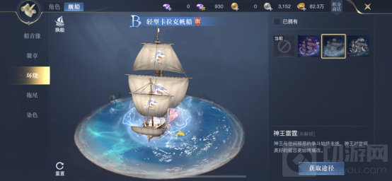 5、舰船的装饰品也是一绝,游戏里从船首到船尾,哪怕是舰船整体的配色,都可以进行修改。比如船首像,可以搭配独角兽、人鱼少女像等装饰;船帆上可以添加各类徽章,有些类似于海贼的标志,谁能拒绝一个萌萌的鲨鱼船帆呢?船体周围的环绕可以选神王雷霆,四周雷电环绕,先不说战斗力如何,看着就很有压迫感。