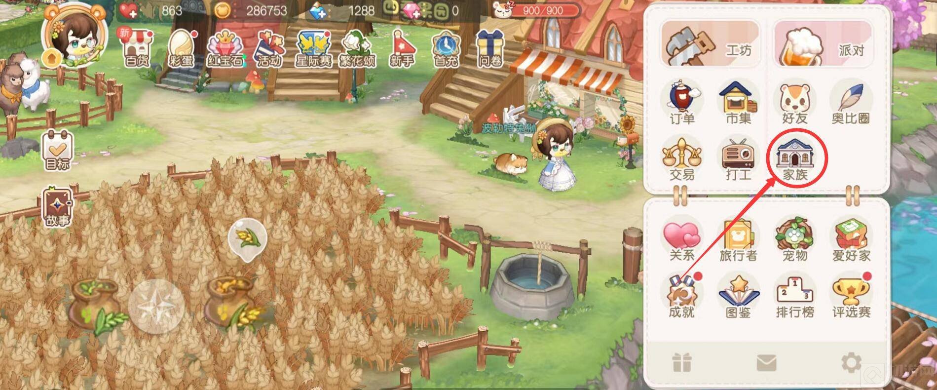 2、在游戏界面点击右上角的小蓝书后,再点击家族,可进入家族界面。