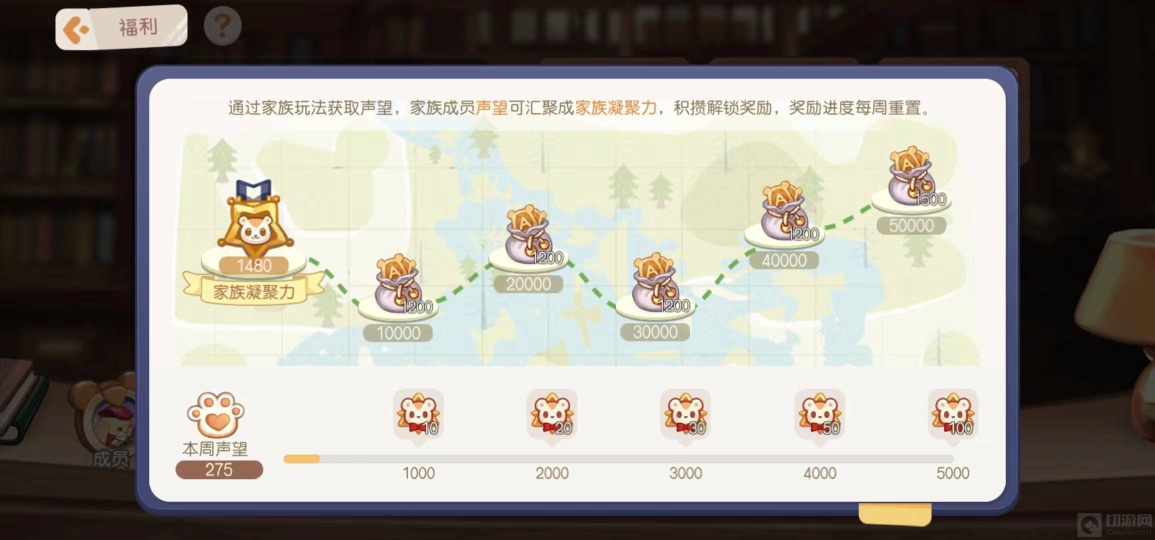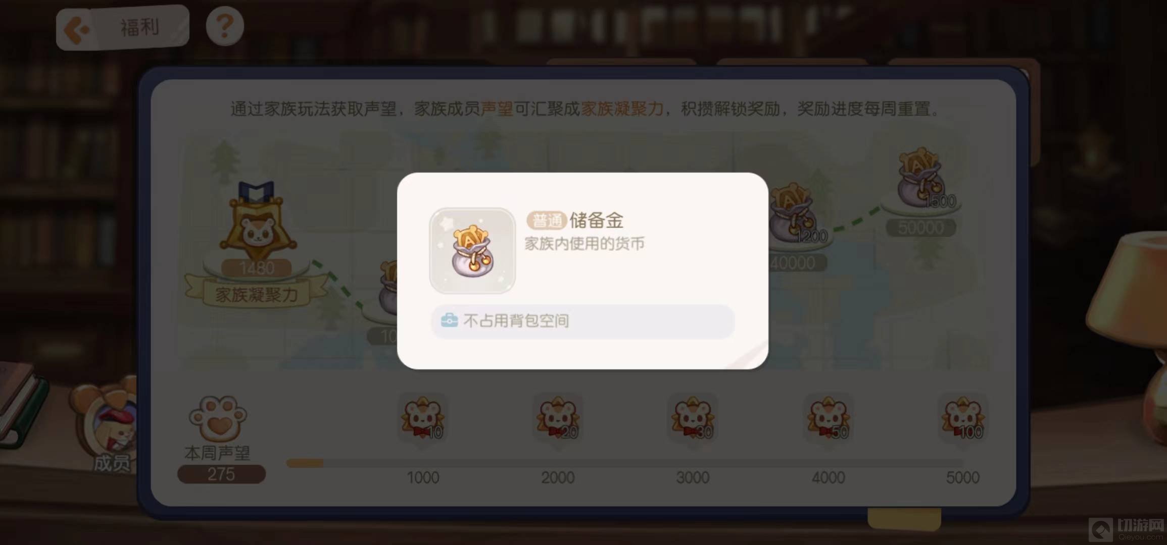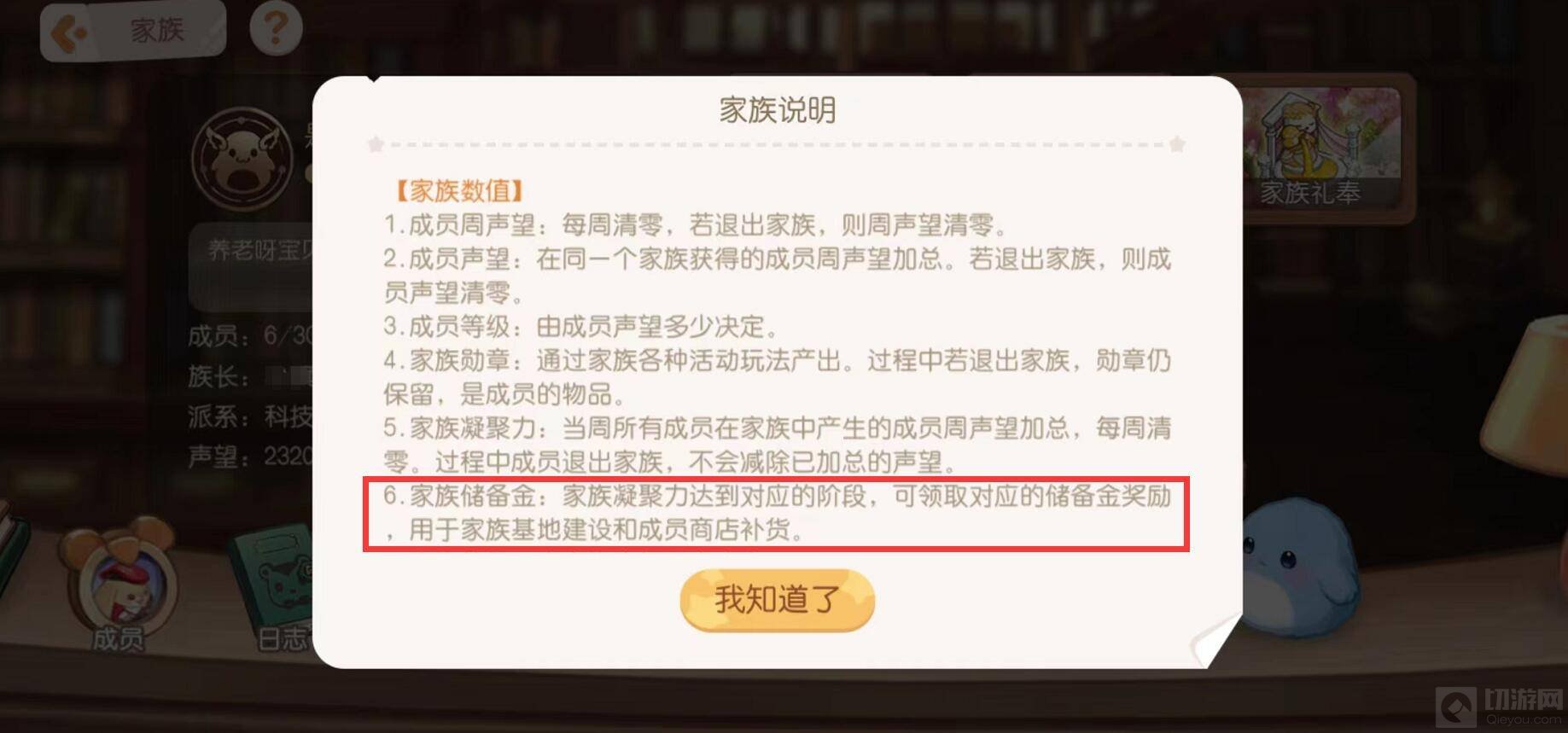 5、家族凝聚力积攒解锁奖励,该奖励即为家族储备金。