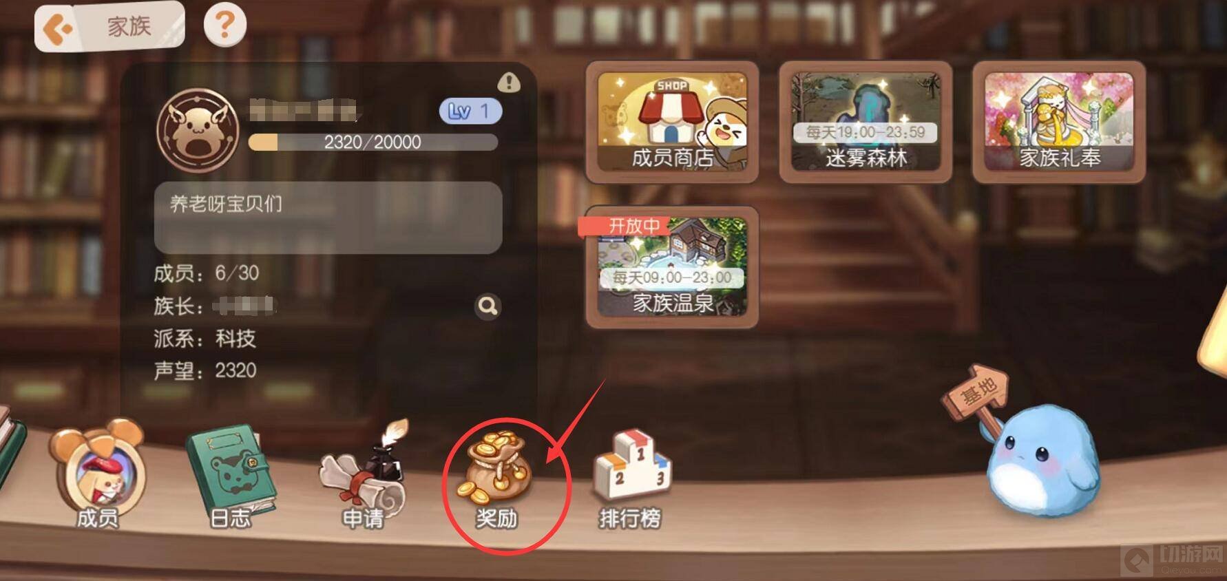 3、在家族界面中点击奖励。