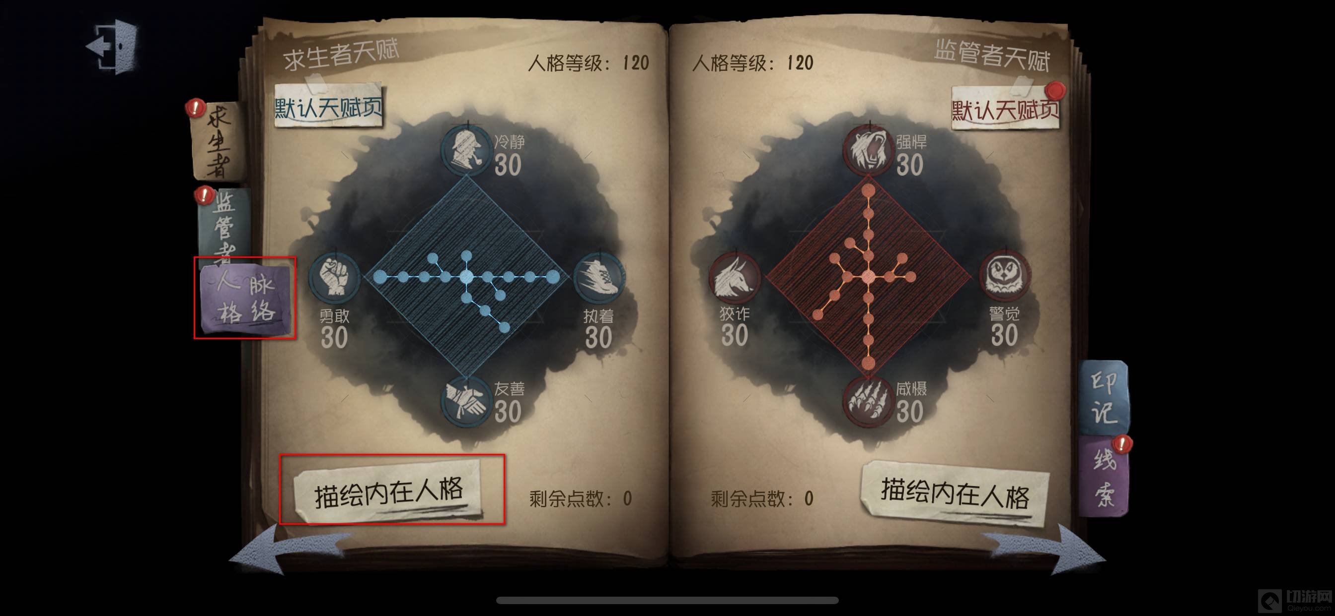 3、接着选择人格脉络标签,点击描绘内在人格。