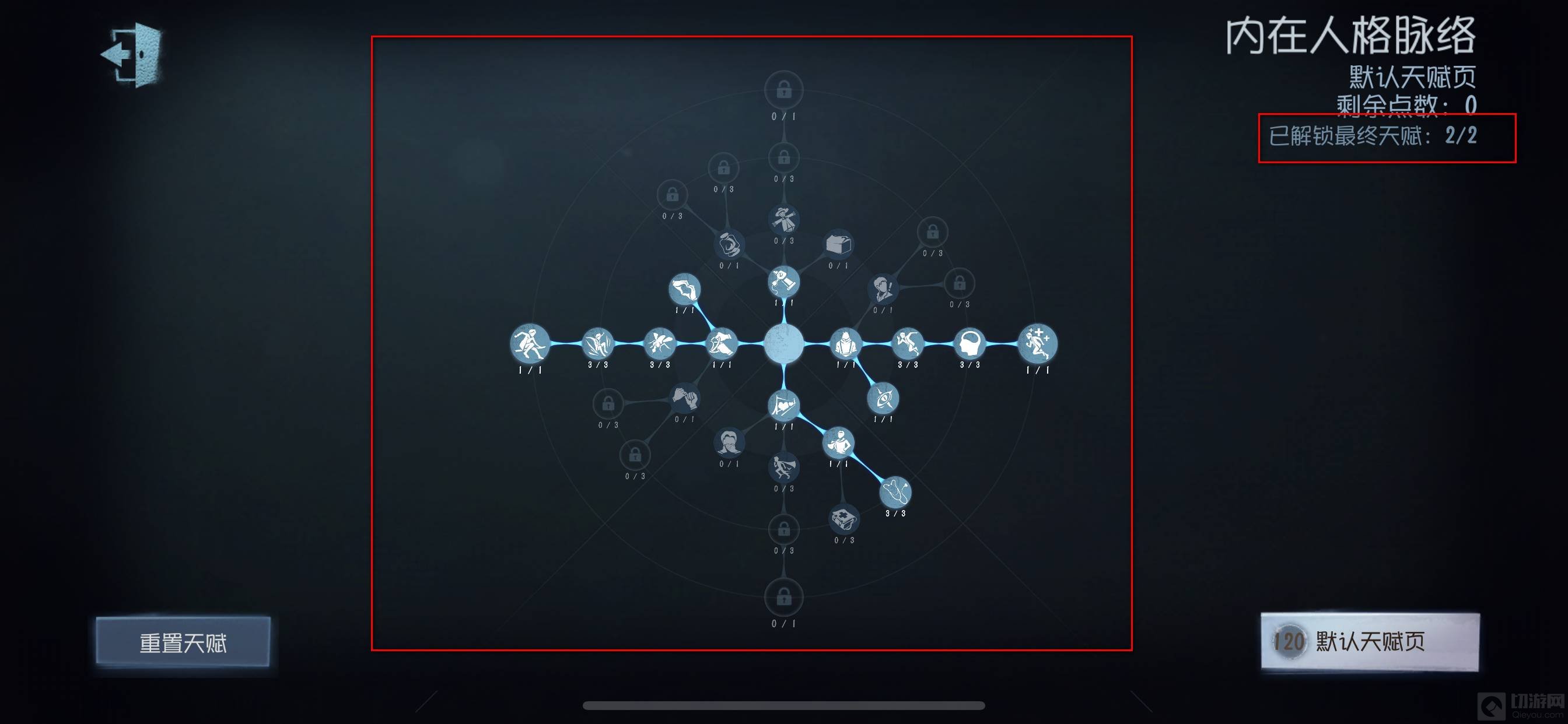 4、最后在此页选择想要携带的天赋即可,注意最终天赋只能解锁两种,推荐携带‘回光返照、破窗理论’。