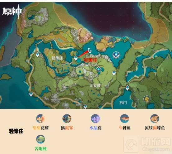 2,璃月钓鱼地点共有七个钓鱼点:①轻策庄②望舒客栈、归离原③奥藏山、琥牢山④渌华池、天遒谷。