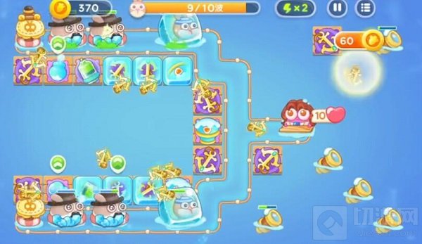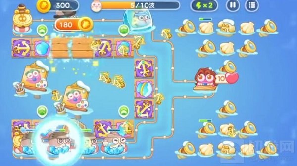 2、然后放置两个雪球炮减速兔子,再放置两个船锚,增加伤害。