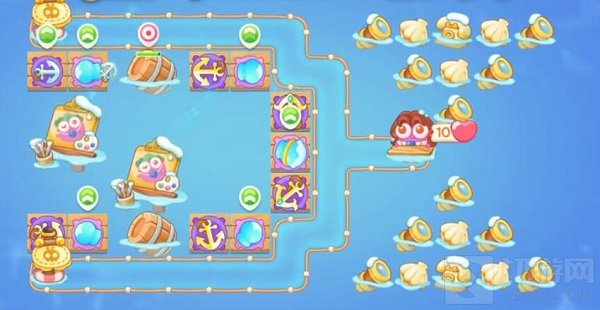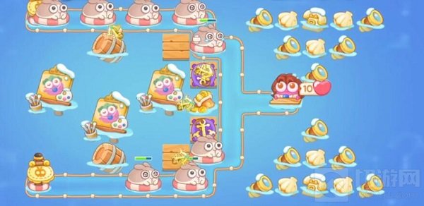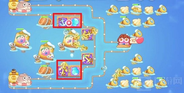 1、开局地图送两个船锚,升级船锚清理兔子和障碍物。