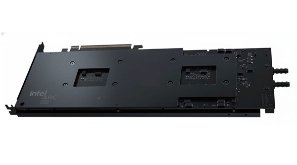 如果你不喜欢暴力的涡轮风扇、双插槽体积,铭瑄又带来了水冷版的锐炫Pro Dual B60,居然做成了单插槽!