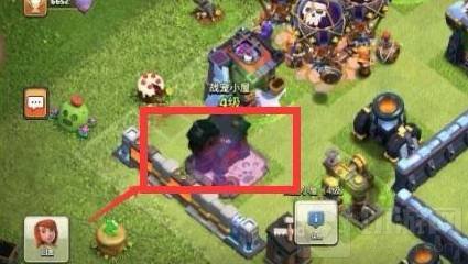 2.进入游戏后,点击右下角的商店,在商店中点击建筑和陷阱中的军队,找到战宠小屋,点击建造,放在地图合适的位置。