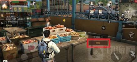 4.接下来抵达交易所后找到交易摊位,就可以打开交易界面,点击‘交易’。