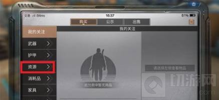 5.爪子在交易所中属于资源一类的物品,所以在左侧的分类中点击‘资源’。