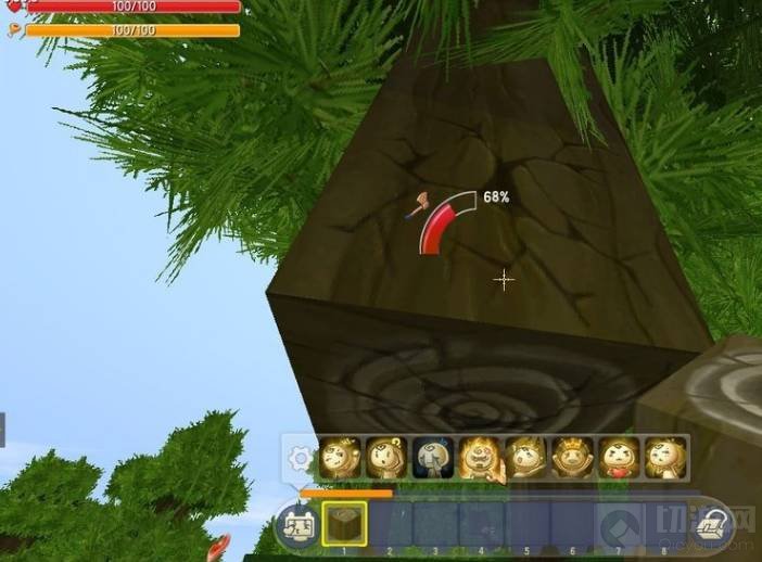 2.收集方法很简单,人物走到树木前面,对准树,用鼠标点击不要松手,等到100%的时候,树木会自动裂开,变成木材。