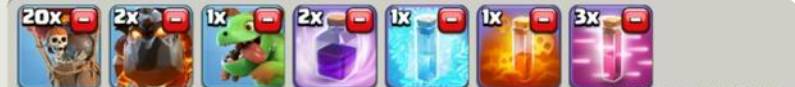 五、龙球流,10火龙+4气球,法术:4雷电法术,核心打法:闪电劈防空火箭,龙一排下跟上气球,女王和蛮王负责解决援兵即可,要形成龙扛伤,气球输出的局面,这把基本稳了。