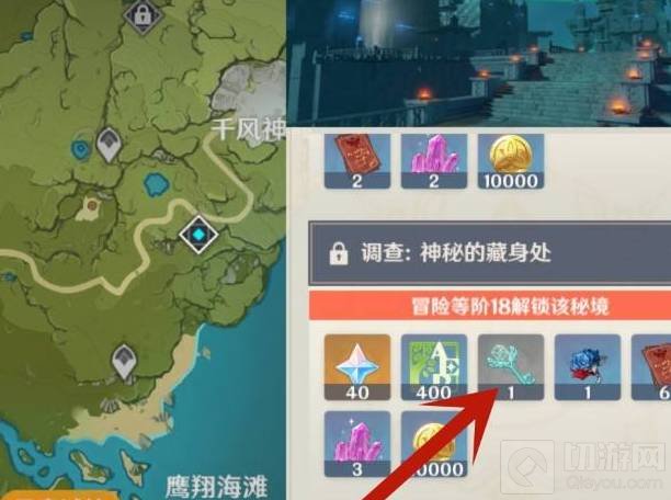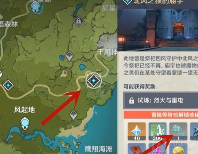 2.可以看到地图指向的秘境,这三个秘境都能获得一根钥匙,分别是西风之鹰的庙宇。