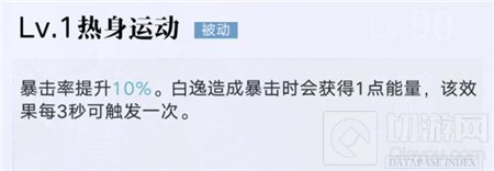 白逸的第2个被动叫【热身运动】,其可以被动提升白逸的暴击率10%,满级10级后可以提升到20%的暴击率,考虑到白逸的专属罪印是与暴击率有关的效果,所以这个提升暴击率的被动效果对白逸来讲还是非常重要的,此外白逸在造成暴击时可以获得1点能量,冷却时间3秒,这点对于白逸积累能量也非常重要,并且待会还可以通过扩展枷锁提升这个回复能量的幅度。