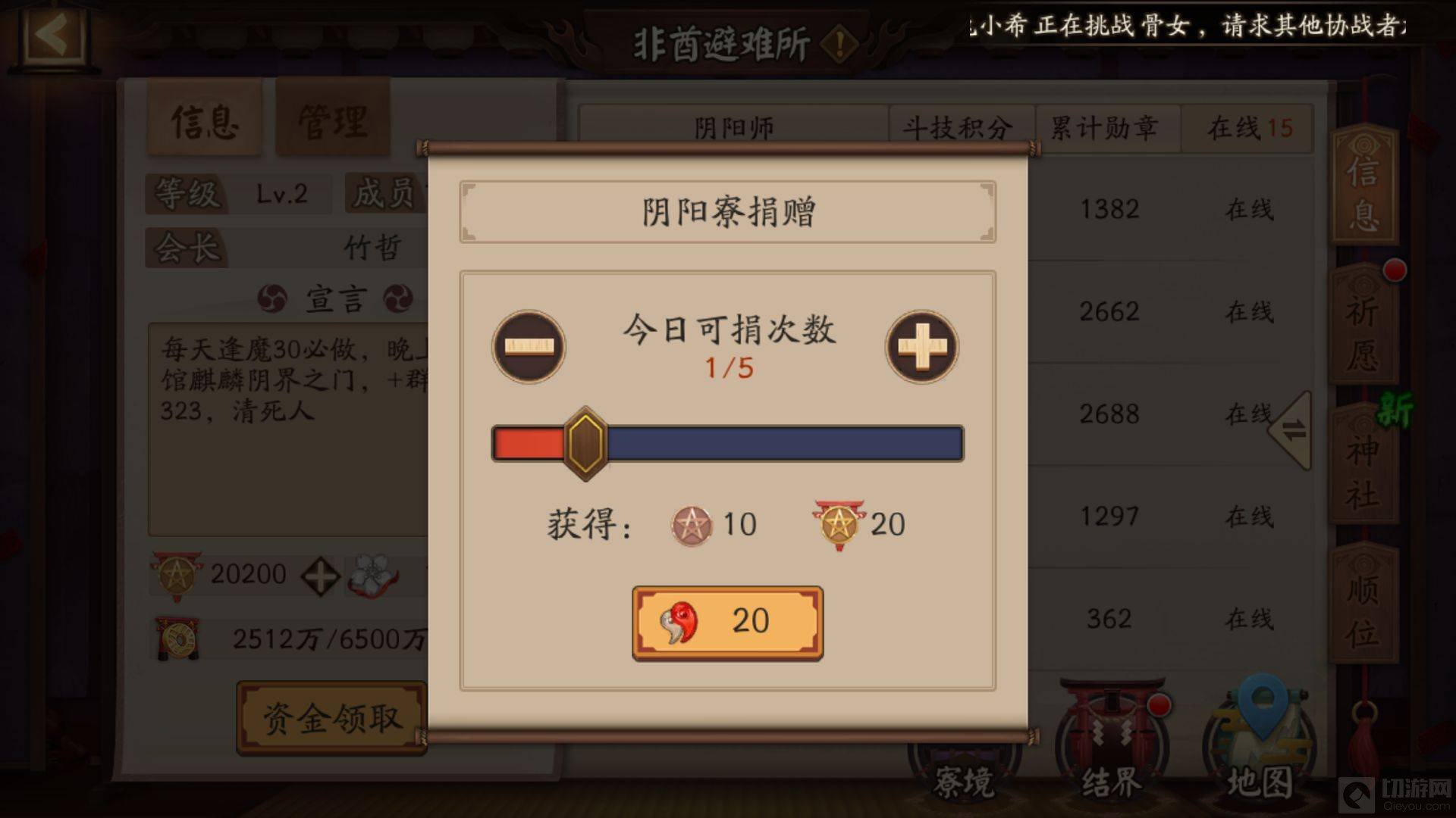 2、然后点击阴阳寮,进入阴阳寮主页面。