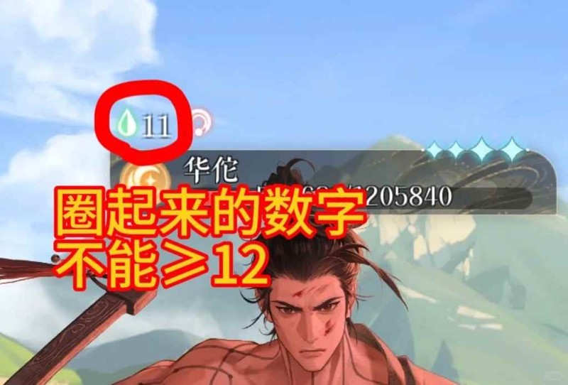 这关的机制是华佗受击不能超过12次(就是我圈起来的数字),不然会被秒杀,张仲景开大可以清掉数字,必须在20回合内击杀掉华佗不然也会被秒杀。